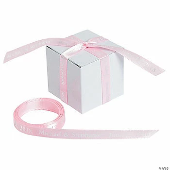 Make your wedding favors unique and memorable, right down to the personalized ribbon! Choose the ribbon shade that matches your wedding colors and then use the ribbon liberally to tie favors, attach tags, hold reception balloons and more. The message of your choosing will repeat approximately every 4″ for the entire 25 feet of satin ribbon. Personalize with 1 line of up to 32 characters/spaces. 3/8″ x 25 ft.