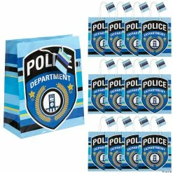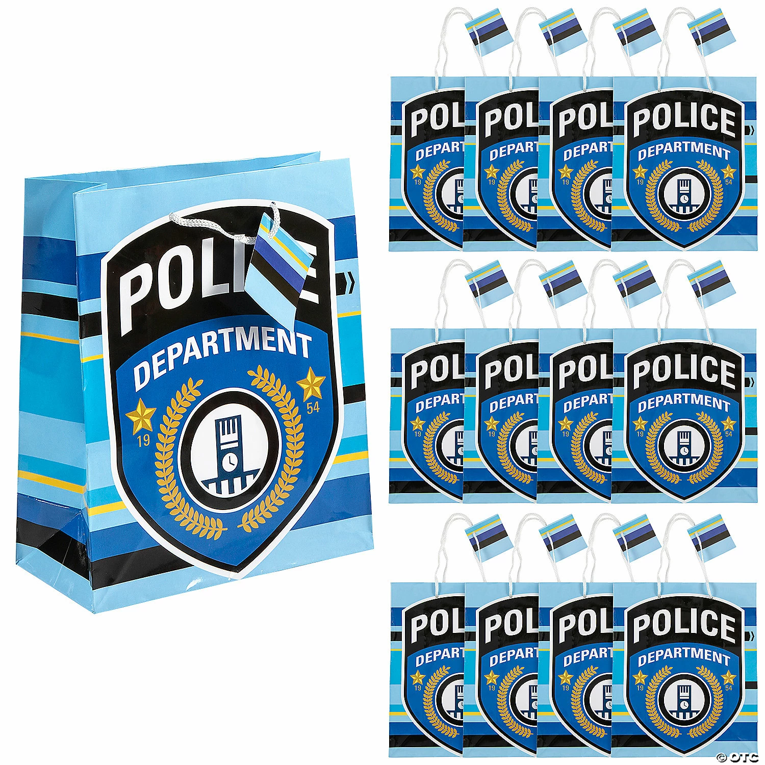 β’ Reusable: Go green with these cute, eco-friendly gift bags! They could even be reused for future party favors.β’ Easy Gift Wrapping: These sturdy gift bags are suitable for wrapping a variety of presents and come with easy-to-carry handles. They make wrapping party favors easy breezy!β’ Quality: These stylish gift bags are sure to make your gift or party favors stand out from the pack. Just add some tissue paper (sold separately) for the perfect gift presentation!Product Description:Perfect for your aspiring officerβs birthday bash! These Medium Gift bags are a must-have addition to your police party supplies. Skip the wrapping and make gift giving easy when you add your birthday gifts to one of these durable gift bags featuring a police badge design. Perfect for the law enforcement office in your life’s birthday or any special event, too! Β© OTCSize: 7 1/2″ x 3 1/2″ x 9″ with 4″ nylon handles.Quantity: 12Material: Paper.