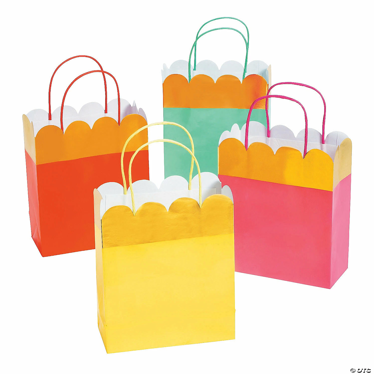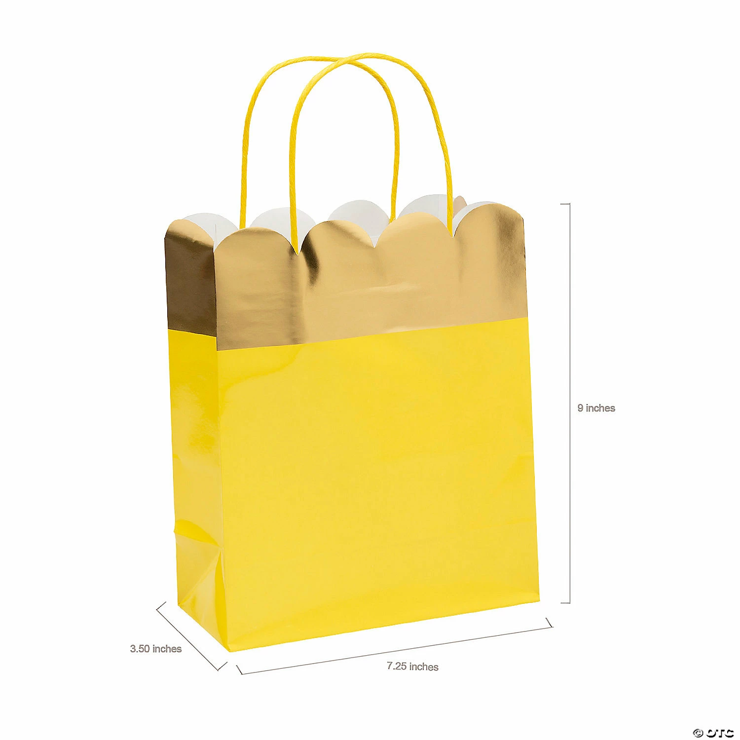 • Easy Gift Wrapping: These sturdy gift bags are suitable for holding a variety of presents and come with easy-to-carry handles. They make wrapping any gift easy breezy!• Quality: These stylish gift bags are sure to make your present stand out from the pack. Just add some tissue paper for a beautiful gift presentation!• Ready to Gift: With several gift bags on hand, you’ll never be caught unprepared when it’s time to wrap a gift again!Product Description:Fill these with favors and prepare for a happy day! Great for party supplies, these colorful gift bags come in hues of red, yellow and teal with shimmering gold detail. They are roomy enough to hold all sorts of kids’ toys, wrapped candy and more goodies that incite glee. Seriously, these are great for almost any type of celebration! © OTCSize: 7 1/4″ x 3 1/2″ x 9″Quantity: 12Material: Paper.