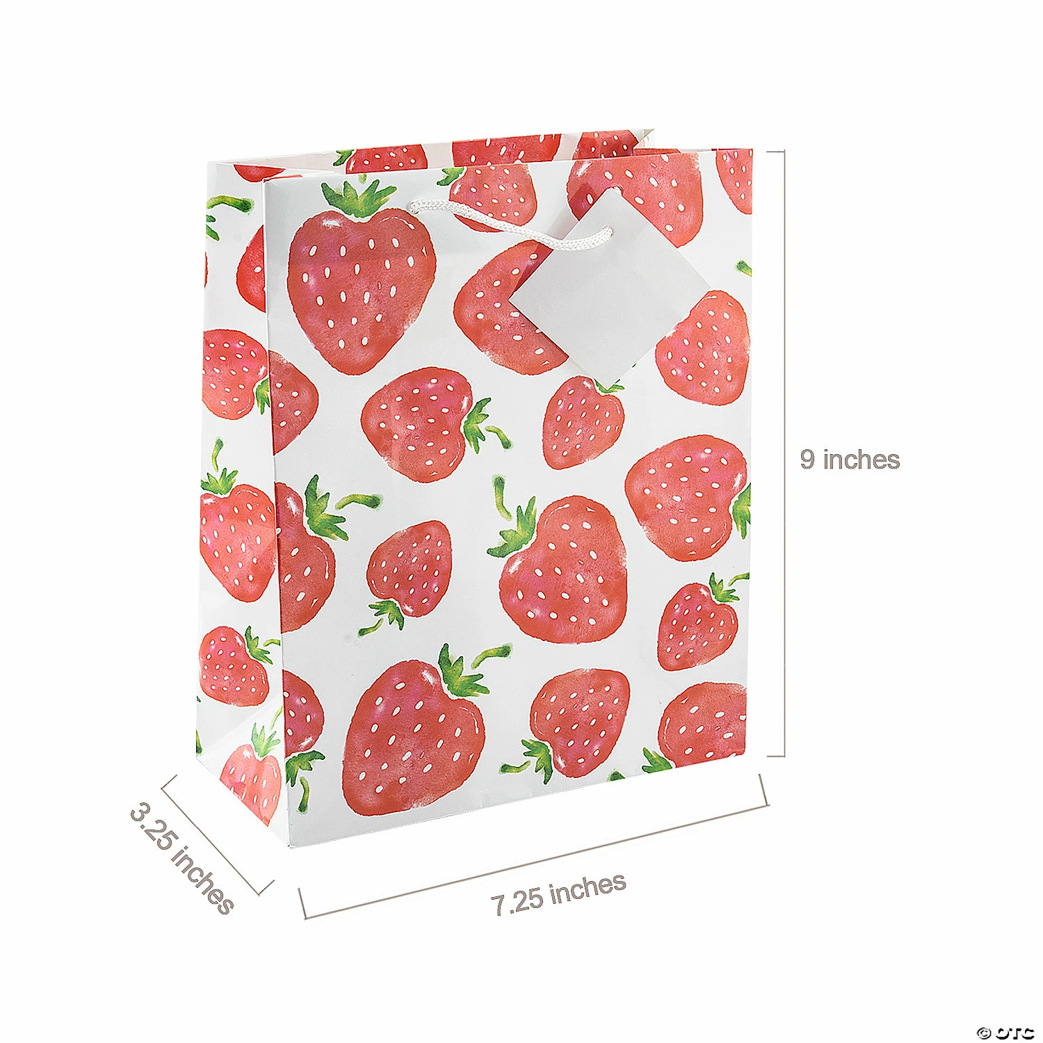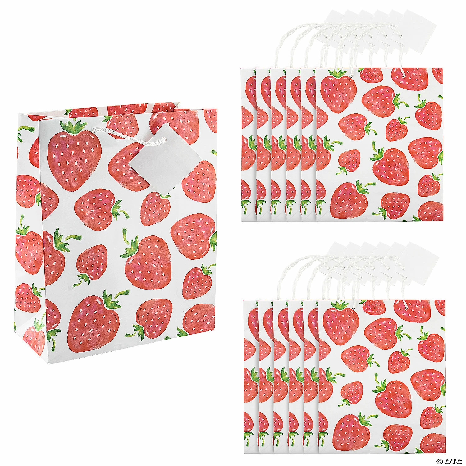 Outlet π₯ 7 1/4″ x 9″ Medium Strawberry Gift Bags with Tags – 12 Pc. π