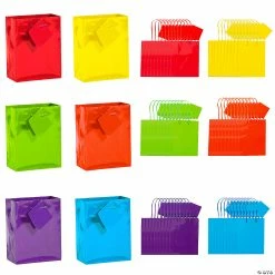 Discount ❤️ Bulk Neon Gift Bags with Tag – 60 Pc. ⌛