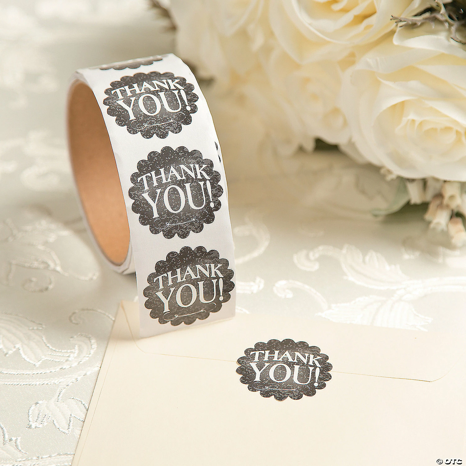 Share your gratitude with these lovely thank you stickers. They’re wonderful for embellishing handmade thank you cards, or put them on wedding favor bags as a quick and easy way to make your treats unique. Add them to paper cups or plastic champagne glasses for a classic touch – they also look wonderful on hand-lettered place cards! (100 stickers per roll, shrink-wrapped) 1 1/2″ ยฉ OTC