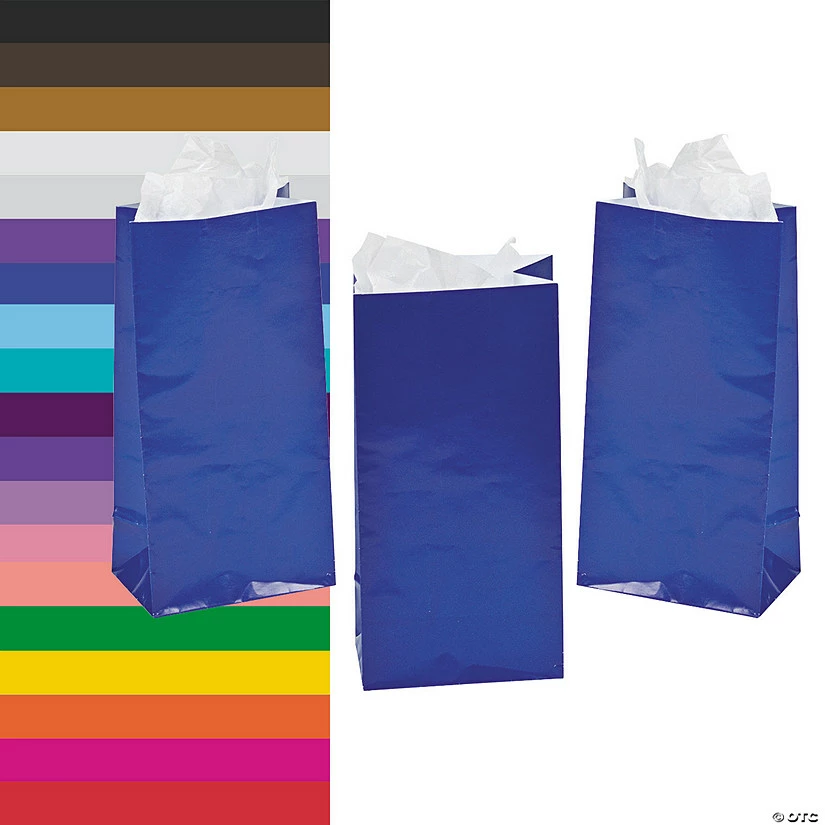 Fill them with fun! Mini Treat Bags are ideal for small gifts and favors at a variety of occasions. The perfect size for small surprises, these paper treat bags let you easily hand out treats, gifts and more. These treat bags are wonderful for multiple celebrations, including weddings, parties, events and holidays. Paper. (2 dozen per unit) 3 1/2″ x 2 1/4″ x 6 1/2″ Not food safe, use wrapped candy only,