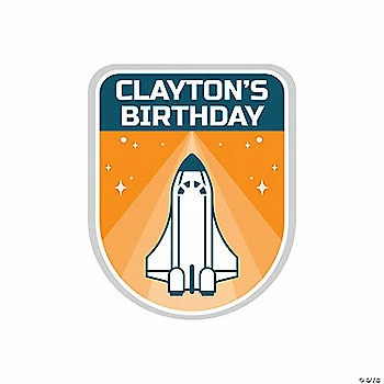 Blast into birthday party fun! Add your own custom message above the rocket ship image and then apply these custom stickers to water bottles, party invitations, party favor bags and most any other party supply. Your outer space-loving birthday boy or girl will be over the moon about these out-of-this-world stickers! Vinyl. (144 pcs. per unit) 1 1/2″ x 2″ Personalize with 2 lines of text. © OTC